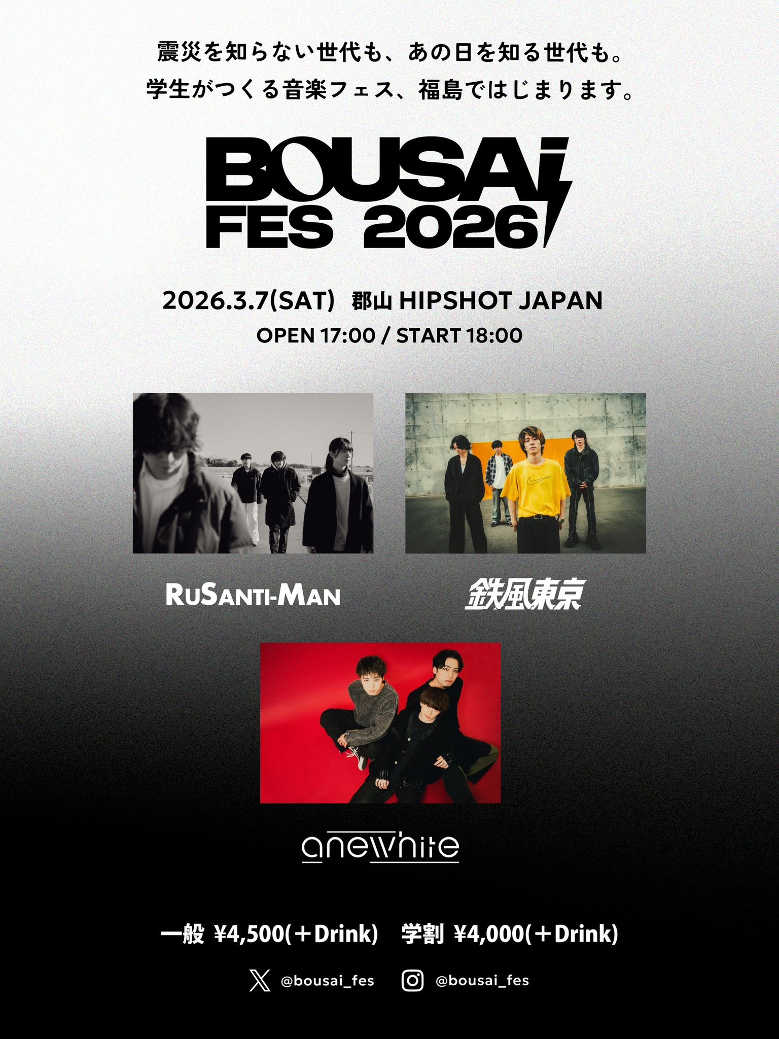 一般 ¥4,500(+drink) / 学割 ¥4,000(+drink)
