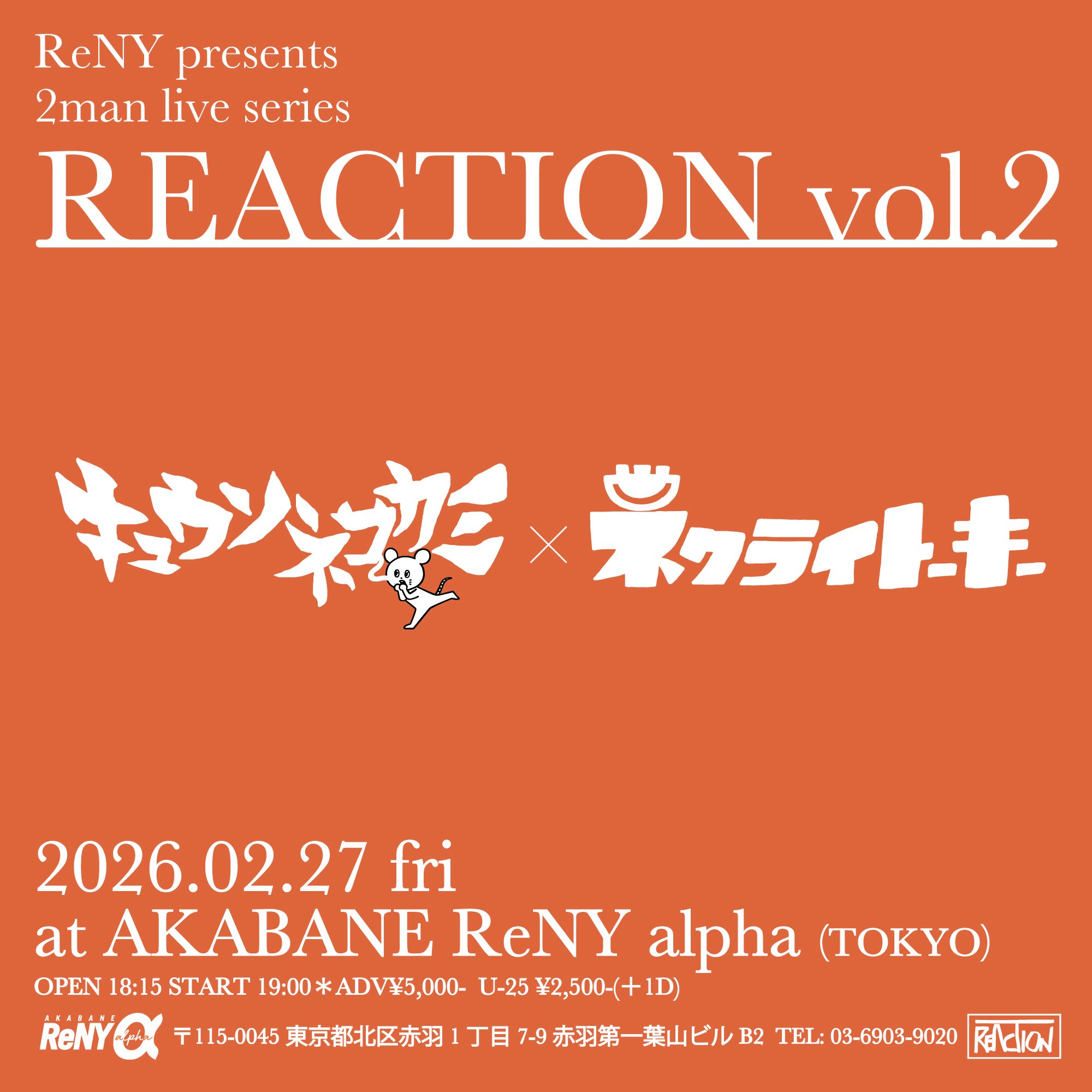 “ReNY presents 2man live series REACTION vol.2 キュウソネコカミ × ネクライトーキー”