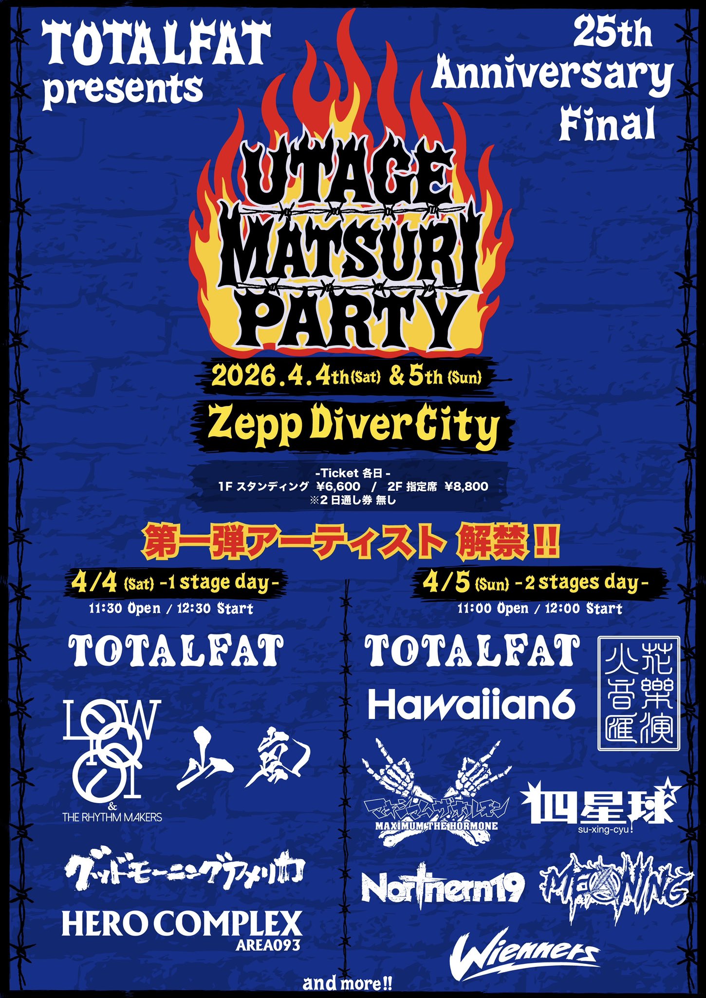 TOTALFAT presents 『UTAGE MATSURI PARTY』